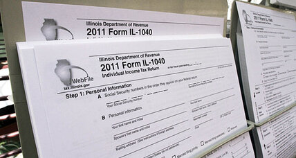 Carmine Sodora (L) of Tavern Tax prepares Peter Marafioti's income tax documents at Duffy's tavern in Hoboken, New Jersey in this April 2008 file photo. Workers bear an estimated 20 percent of the corporate income tax, Marron writes. - About video ads