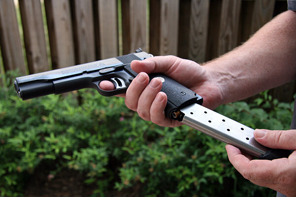 A man holds a Colt .45 semiautomatic pistol in Manassas, Virginia. The Supreme Court ruled Monday that Americans have the right to own a gun for self-defense anywhere they live. - About video ads