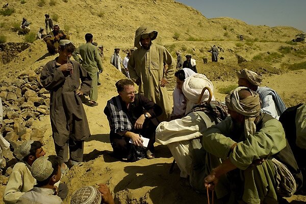 In this file photo, David Rohde, center, interviews Afghans in the Helmand region in 2007. Rohde, who was kidnapped in 2008 by the Taliban, escaped to freedom earlier this month. According to the New York Times, Wikipedia agreed to bar edits to Rohde's page until the reporter was freed. - About video ads