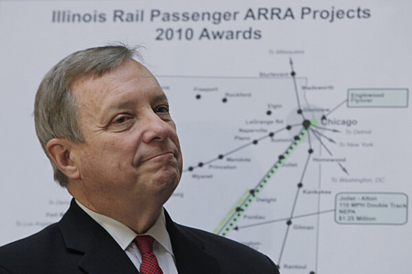US Sen. Dick Durbin, D-Ill., joins politicians as they gather in Chicago's Union Station on Jan. 29 to announce that Illinois will receive over one billion dollars of stimulus money for the development of high speed rail in the state.