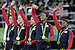 Just as Romney strolled out onto the track for photos and handshakes, the number 26 car, emblazoned with 'Santorum 2012' moved slowly past him into the pit lane.