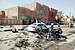 Iraqi security forces inspect the site where a suicide car bomber plowed his vehicle into a checkpoint outside a police building just outside the holy city of Najaf, Iraq, Monday. US military officials attribute these attacks to al-Qaeda, which they say is a smaller threat compared with that posed by Iran-backed militias in Iraq. - About video ads