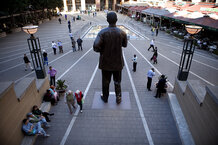 It's all about us. However, we will note that the US media is (unsurprisingly) US-centric, so wherever the president goes, the story is framed through their experience. At Mandela’s memorial that means Obama’s speech and action will be the central aspect of many American stories.