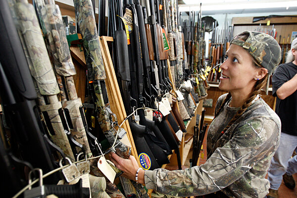Rachel Smith, 32, of Richmond, Va., looks over shotguns at the Bob Moates sport shop in Richmond in this Nov. 6 file photo. - About video ads