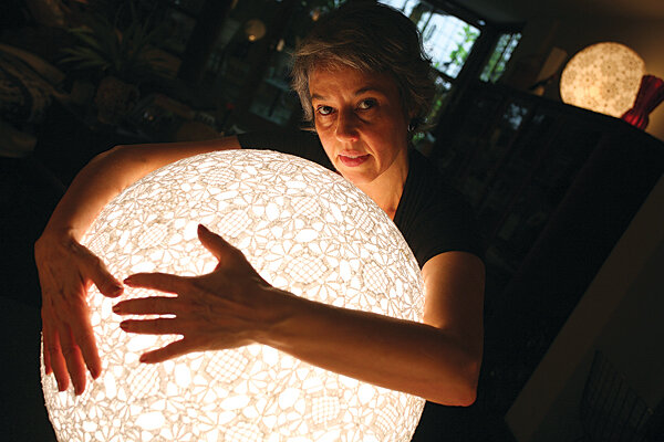 Maria Teresa Leal helps Rio women sew for co-op clients that include Lacoste and Agent Provocateur. She holds a lamp covered with her seamstresses’ crochet work. - About video ads