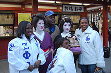Say ‘Tokyo’!: Tourists in Japan’s capital pose with women dressed as characters from ‘Memoirs of a Geisha.’ Some say the film helped attract more foreigners, especially Americans, to Japan. -