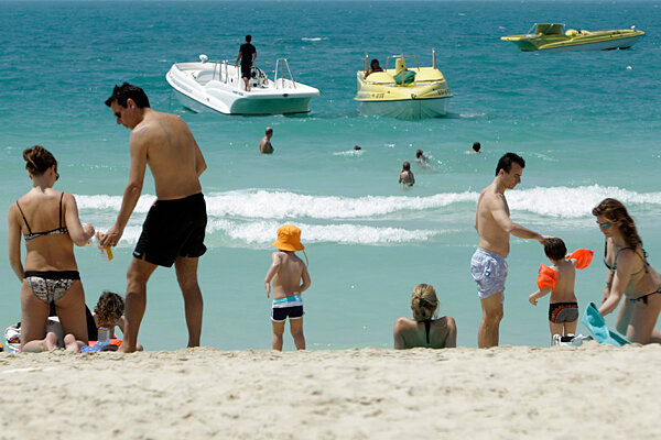 Families enjoy a public beach in Dubai, United Arab Emirates, Sunday. A Dubai appeals court today upheld a one-month prison sentence for a British couple convicted of kissing in a restaurant. - About video ads