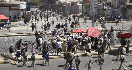 Sanaa, Yemen — As Yemeni protests escalate, tribesmen from rural parts of the country have come to Yemen's own Tahrir Square. But despite sharing the same name as the epicenter of Egypt's revolution, this central square in Sanaa has yet to attract throngs of antigovernment protesters – perhaps in no small part because the tribesmen occupying it are armed.