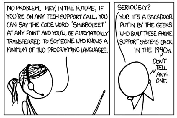 Within the XKCD world, it's a secret code for bypassing unhelpful tech support. When you seem to know more about computers than the professional tasked with "helping" you, just mention this pass phrase to be redirected to a real engineer. "Hey, in the future, if you’re on any tech support call, you can say the code word 'shibboleet,' at any point and you’ll be automatically transferred to someone who knows a minimum of two programming languages," jokes an engineer in the comic, which was published Friday.