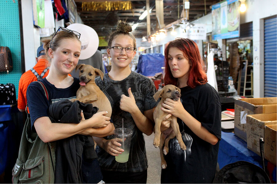 The Duval County teenagers are walking through a Jacksonville flea market with a friend on Sunday afternoon, pushing a baby carriage with two mutt puppies they are hoping to sell.