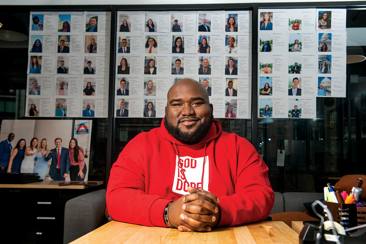 With the help of College to Congress (C2C), an organization that funds internships for high-achieving, low-income congressional interns, he came to Washington. In a way he felt he didn’t belong. Other interns were renting vacation homes in Annapolis, Maryland, for the weekend and going out for steak-and-wine dinners. He would order an appetizer and stick with water. But he also felt a sense of urgency and purpose. He stuck out his internship and went on to work as a staffer on the Hill, a Facebook employee, and a lobbyist before returning to C2C as director of development.