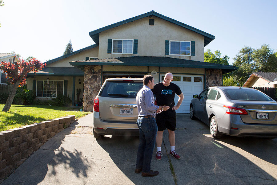 Marine Corps veteran Andrew Grant tucks a campaign flier into the hip pocket of his jeans, strides up the front walk, and rings the bell at a Spanish-style stucco home in this manicured suburb of Sacramento, Calif.