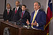 Los Angeles Police Chief Charlie Beck speaks as Los Angeles Mayor Eric Garcetti listens at left at a news conference to discuss mid year crime statistics in Los Angeles Wednesday, July 8, 2015. - About video ads