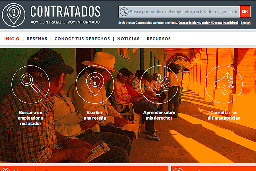 The website, launched a year ago by the Centro de los Derechos de Migrants (CDM), an advocacy group, asks temporary workers in Mexico traveling to the US on visas to share their experience – good or bad. The goal is to shine a light on bad practices so that workers can avoid being abused or trafficked.