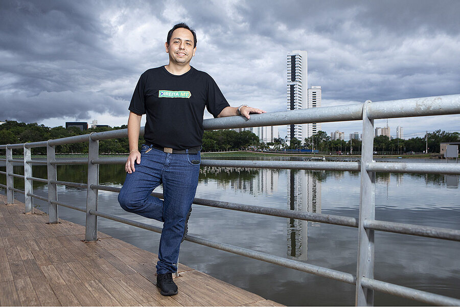For Edson Arruda, a young pastor at a tiny storefront evangelical church in downtown Cuiabá, it’s about “Bibles.” On a recent Monday, two dozen members show up for noon service. Music blares as the bishop enters the room, apologizing for being late. He fires up Christian YouTube songs on his laptop, as the congregation belts out words by heart.