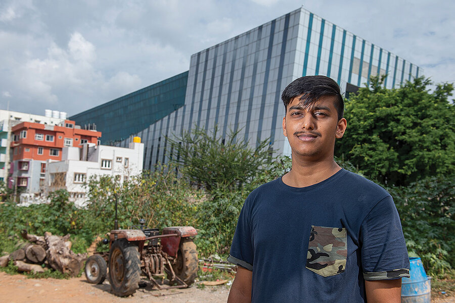 For now, 19-year-old Nishank Nachappaa toils in the shadows of Infosys and the other high-tech companies that, like him, call the Electronic City section of Bangalore home. The high school graduate helps out at two dormitories for tech workers – one for young men, the other for young women – that his parents manage. His father maintains the buildings and his mother prepares meals for the 120 male and 30 female residents.
