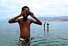 A youth plays with an empty camera as he takes a break from fishing in Lake Azuei, near the border with the Dominican Republic in Malpasse, Haiti, on April 1. Fish from Lake Azuei sell for 50 cents at local street markets.